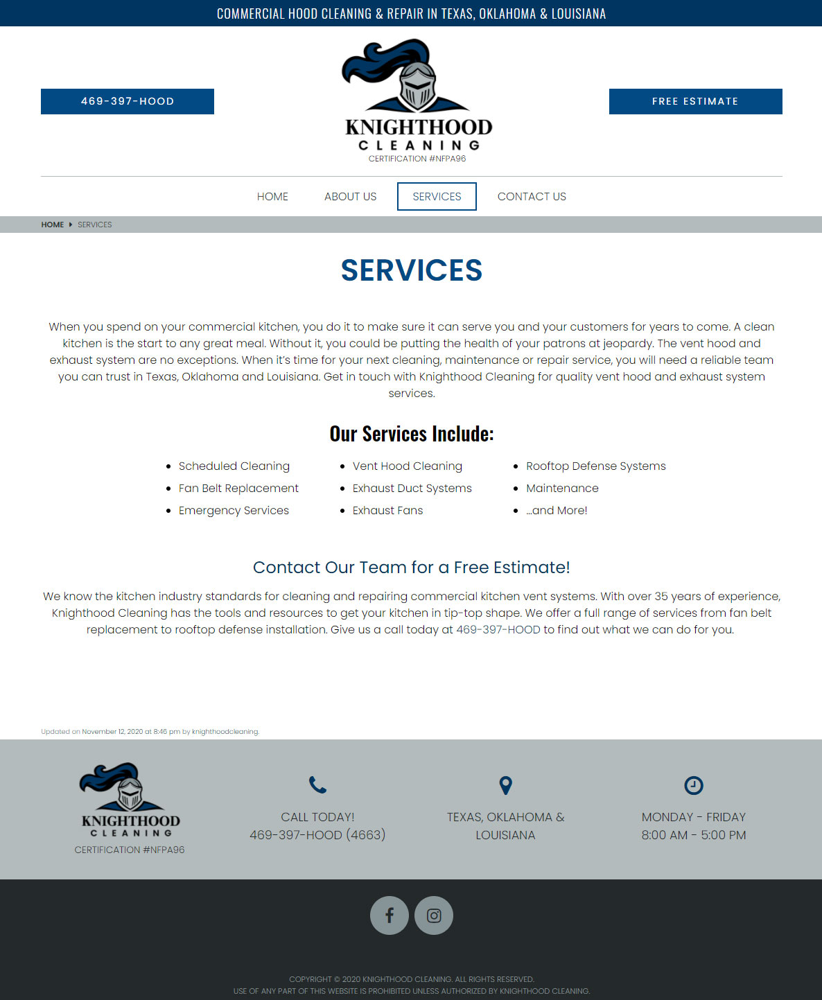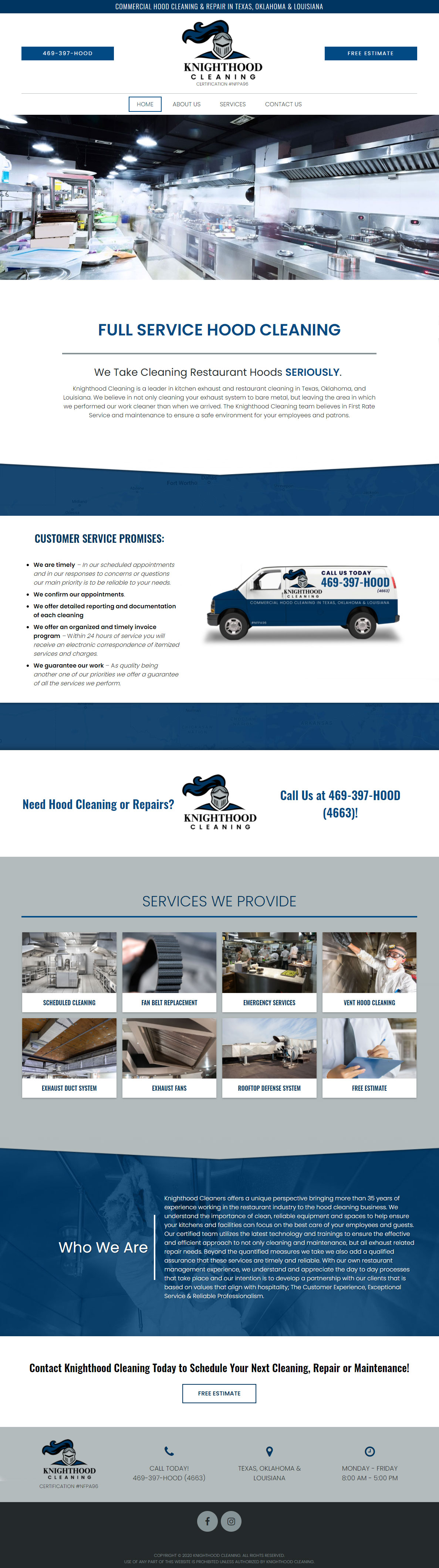 Knighthood Cleaning is a commercial restaurant vent and duct cleaning service in Dallas/Ft. Worth. They needed edits made to their logo and the full site set up and design.